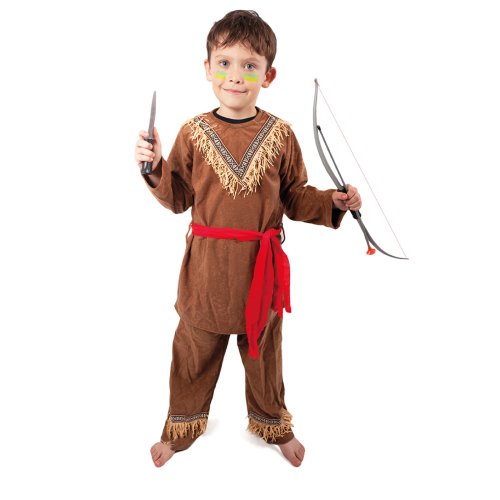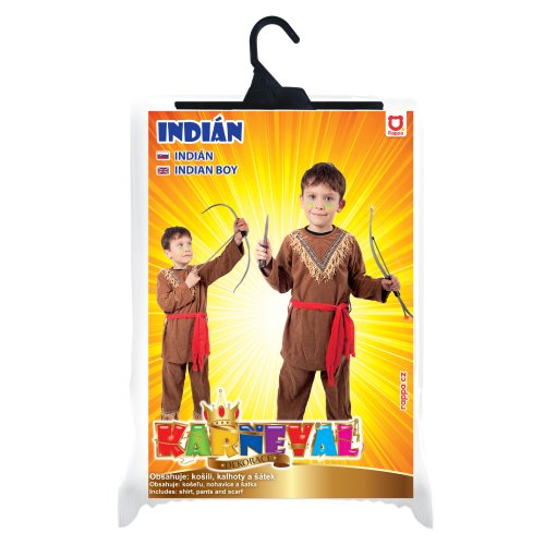 Stylový karnevalový kostým s motivem indiána! Kostým hnědé barvy ve velikosti S je určen pro chlapečky ve věkovém rozmezí 4-6 let. Balení obsahuje horní díl s indiánským vzorem, kalhoty a červený šátek. Oba díly jsou zdobeny střapci. Staň se největším frajerem karnevalového večírku díky tomuto kostýmu a ohrom tak všechny své kamarády!