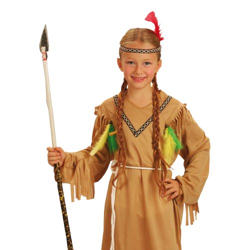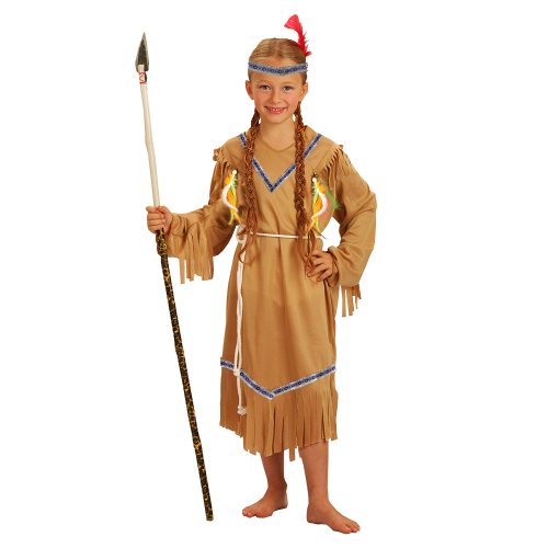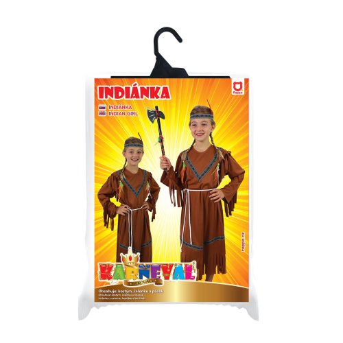 Stylový karnevalový kostým v motivu indiánské slečny! Kostým hnědé barvy ve velikosti M je určen pro děvčata ve věkovém rozmezí 6-8 let (117-128 cm). Balení obsahuje šaty s indiánskými vzory, šňůrku sloužící jako opasek a perfektně sladěnou čelenku. Celé šaty jsou navíc zdobeny střapci. Sekera není součástí balení.