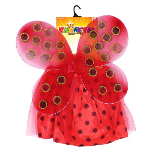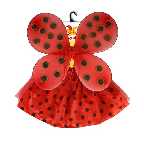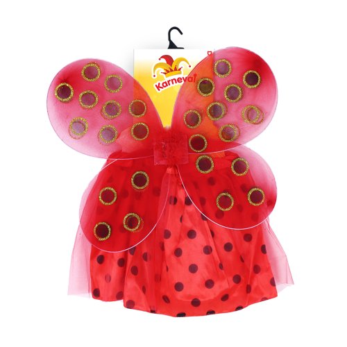 Proměň se na berušku díky tomuto roztomilému kostýmu! Kostýmek červené barvy je určen pro holčičky ve věkovém rozmezí 3-7let. Balení obsahuje sukničku zdobenou puntíky a perfektně sladěná křídla. Sukýnka, která je v pase na gumičku je dlouhá cca 30 cm.
