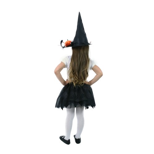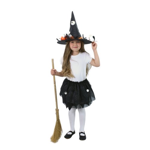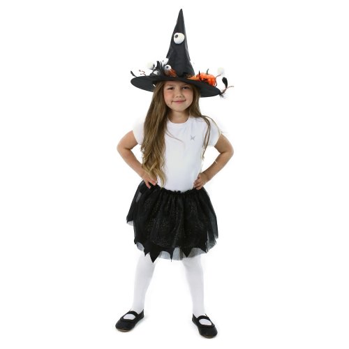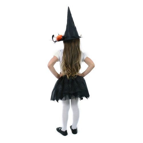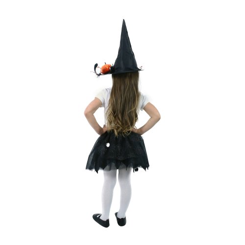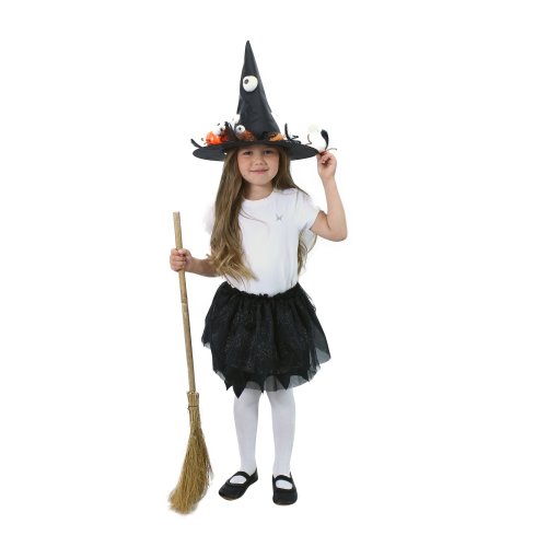 Magická sukýnka pro malé čarodějnice! Kostýmek černé barvy zdobený dekorem pavučinky je určen pro holčičky ve věkovém rozmezí 3-7 let. Balení obsahuje nadýchanou sukničku a k tomu perfektně sladěný klobouk. Sukně je v pase na gumičku. Vhodný i na oslavu Halloweenu.
