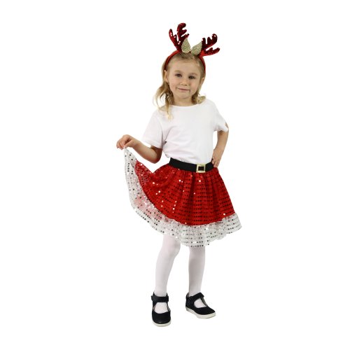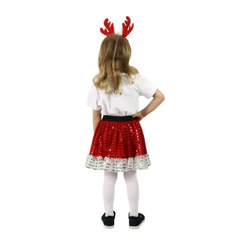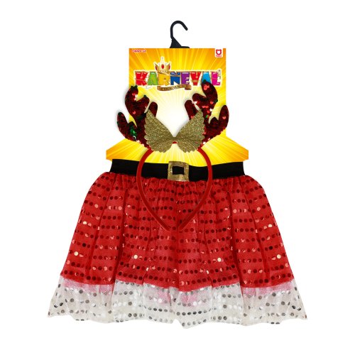 Roztomilá sukýnka TUTU je určena pro holčičky ve věkovém rozmezí 3-7 let (104-146 cm), obvod pasu 46-70 cm. Sukýnka červené barvy s bílým volánem a černou gumou v pase je v délce 30 cm. Součástí této sady je senzačně sladěná čelenka se sobími rohy!