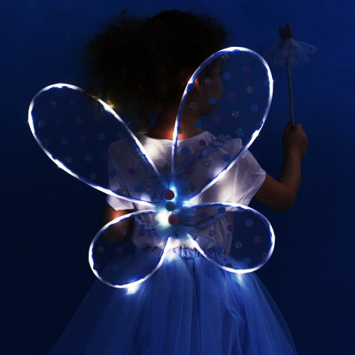 Krásná vílí sada pro malé holčičky! Sada obsahuje modrou tylovou TUTU sukýnku se saténovou spodničkou. Sukně je zdobena ve spodní části kuličkami, k tomu perfektně sladěná křídla a hůlka ve stejném motivu. V lemování křídel jsou zabudována světýlka, která po zapnutí svítí. Baterie jsou součástí. Sukně je dlouhá cca 36 cm a je vhodná pro obvod pasu 50-60 cm. Určeno pro holčičky ve věkovém rozmezí 3-10 let (104-146 cm). Nejen letos je potřeba myslet EKO-nomicky i EKO-logicky! EKO-balení je vhodné zejména pro e-shopy kde zákazník nakupuje dle fotografie a není třeba velkého balení s věšákem. EKO-logicky – na balení bylo použito méně plastu a dalších materiálů. Jedná se o malý transparentní obal s fotografií. EKO-nomicky –EKO-obal zabere jen polovinu místa – šetřete skladová místa s námi!
