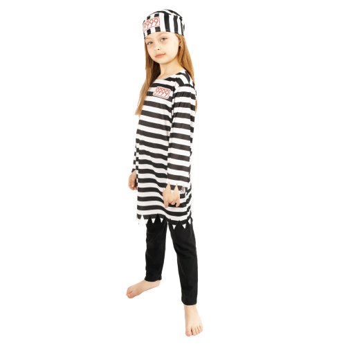 Pruhovaný karnevalový kostým vězeňkyně v typických bílo-černých barvách ve velikosti M je určen pro děvčata ve věku 6-8 let (117-128 cm). Kostým obsahuje dlouhé triko a čepici s číslem vězně. Nejen letos je potřeba myslet EKO-nomicky i EKO-logicky! EKO-balení je vhodné zejména pro e-shopy kde zákazník nakupuje dle fotografie a není třeba velkého balení s věšákem. EKO-logicky – na balení bylo použito méně plastu a dalších materiálů. Jedná se o malý transparentní obal s fotografií. EKO-nomicky –EKO-obal zabere jen polovinu místa – šetřete skladová místa s námi!