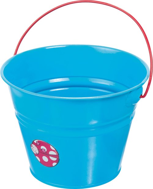 Dětský kovový kyblík ve modré barvě s obrázkem s dětským motivem.