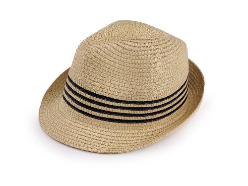 Letní dětský klobouk zdobí motiv proužků. V teplých dnech klobouk skvěle ochrání před sluncem, je velmi lehký a prodyšný. Je velice oblíbený, děti rádi vypadají jako dospěláci, což jim klobouk typu Fedora umožní. Šířka krempy je 4 cm. Jednotlivé části klobouku.