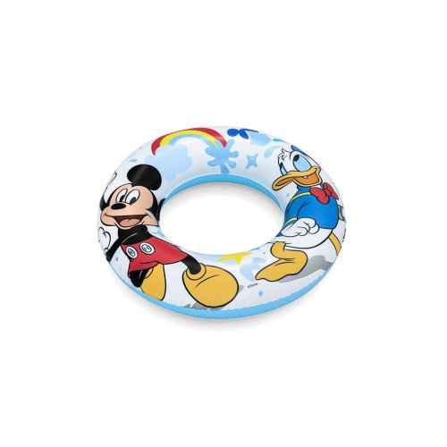 Dětský nafukovací kruh Bestway Mickey Mouse. Krásný barevný nafukovací kruh s potiskem Mickey Mouse si oblíbí každé malé dítě. Nafukovací kruh je bezpečný kamarád Vašeho dítěte ve vodě. Děti, které ještě dokonale neovládají plavání by ho určite měly používat. Mickey Mouse je oblíbená dětská postavička a nebude dítěti překážet. Vhodné pro děti od 3 do 6 let. Rozměr: cca 56 cm. Složení: vinyl.