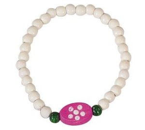 Dětská bižuterie z dřevěných perlí navlečených na gumičce. Délka náramku je cca 70 mm. Nevhodné pro děti do 3 let. Obsahuje malé části. Výrobek je zdravotně nezávadný