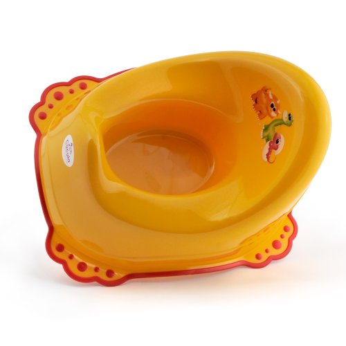 Dětský nočník s protiskluzovým povrchem v oranžové barvě s červenou a obrázkem dinosaura od značky Cuculo.