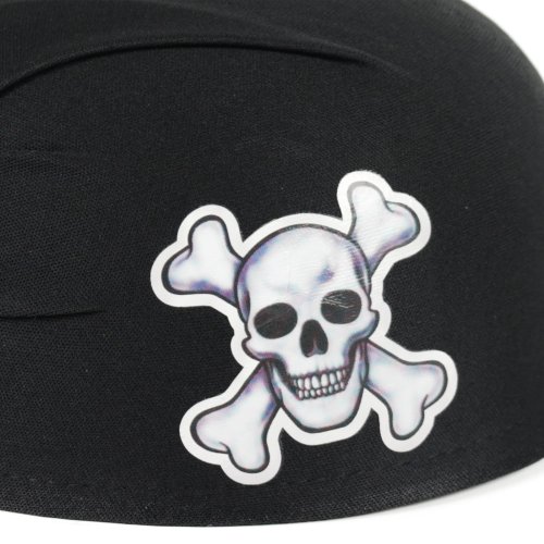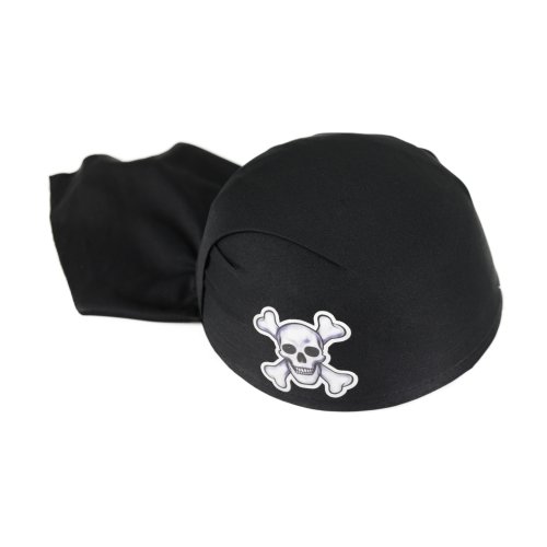 Šátek pro skutečné piráty! Tento parádní kousek je zdoben bílým potiskem s motivem lebky. Staň se hvězdou karnevalového večírku díky tomuto klobouku a ohrom tak všechny své kamarády!
