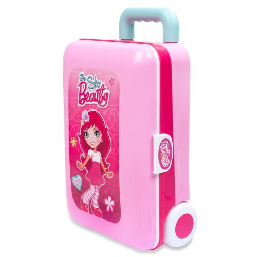 Krásný dětský toaletní stolek v kufříku Baby Mix ukrývá v sobě skutečný poklad pro každou malou princeznu. Po otevření změníte kufřík v opravdový toaletní stolek obsahující zrcadlo se světýlkem ve tvaru srdíčka, které po zmáčknutí vydává kouzelný zvuk. 3 baterie typu AAA nejsou součástí dodávky. Ve stolečku nalezne dále vaše princezna fén, dva náramky, náhrdelník, tři prstýnky, tři láhvičky s lakem na nehty, dva balzámy na rty, hřeben na vlasy a parfém. Kufřík je vybaven kolečky a teleskopickou tyčí, které každá malá princezna ocení i na cestách. Náš toaletní stoleček je skvělým dárkem pro každou malou holčičku. Sada neobsahuje skutečnou kosmetiku, celá je vyrobena z kvalitního plastu, proto je zcela bezpečná. Je určena pro děti od 3 let.<BR>Rozměry stolečku: 60 x 53 x 24,5 cm<BR>rozměry kufříku s vytaženou rukojetí: 53 x 23 x 14 cm<BR>rozměry kufříku se staženou rukojetí: 33 x 23 x 14 cm<BR> váha: 1,3 Kg<BR>