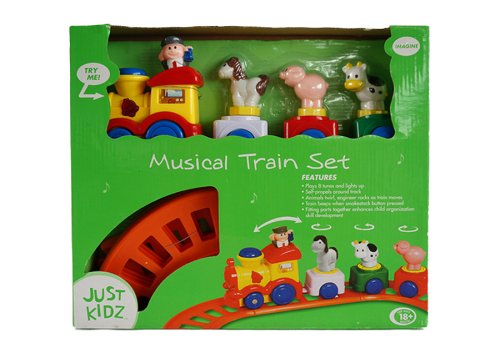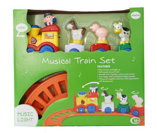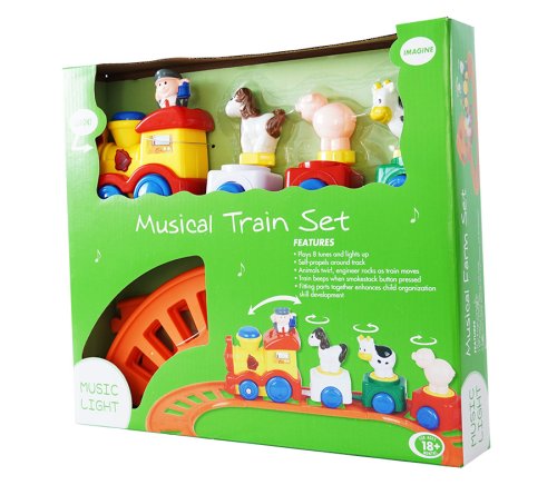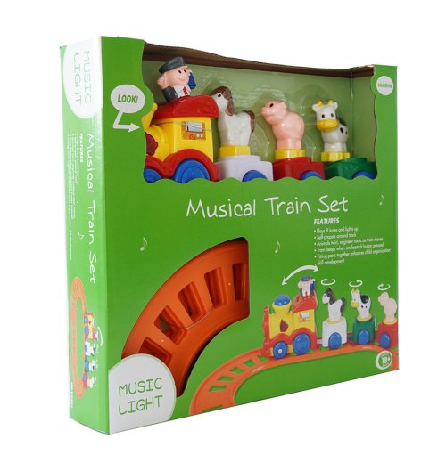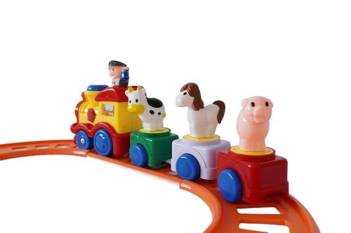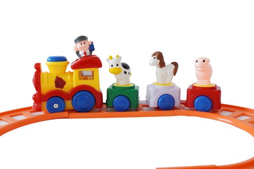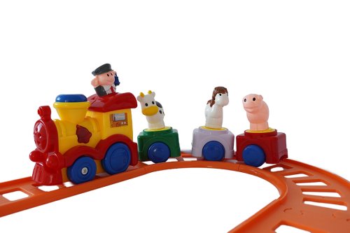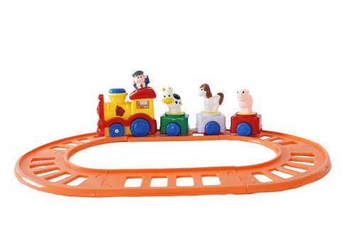 Vlaková dráha s velkou mašinkou na baterie. Vlak vydává zvuky.