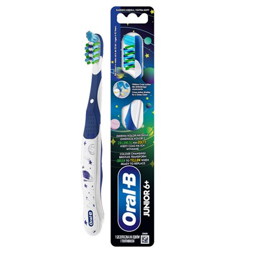 S kartáčkem Junior 6+ si uděláte z čištění zubů neobvyklé dobrodružství. Tento manuální kartáček je určen pro děti ve věku 6–12 let a čistí mléčné i trvalé zuby. Má vlákna CrissCross, která odstraňují zubní plak i z těžko přístupných míst. Vestavěná část na čištění jazyka odstraňuje bakterie z jazyka a sliznice tváří a inovativní technologie změny barvy vás upozorní, kdy je třeba kartáček vyměnit.