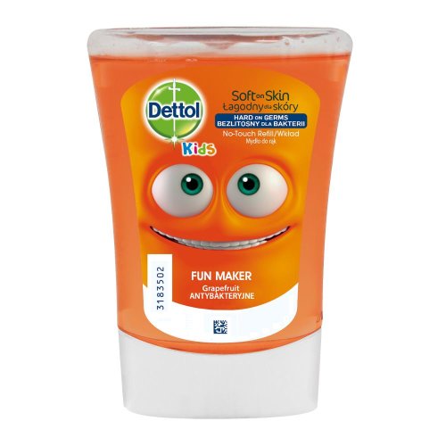 Kids náplň do bezdotykového dávkovače – jemné na kůži, drsné k mikrobům Bezdotykový dávkovač mýdla Dettol Kids pomůže Vašim dětem mýt si ruce Mýdlový kouzelník 250ml – vůně Heřmánku