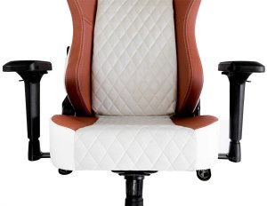Herní židle DEV1S CREMA je kombinací luxusu a elegance, která uspokojí potřeby každého skutečného hráče. Broušená koženka připomíná luxusní sedadla nejdražších sportovních aut, zatímco ocelový rám zajistí mimořádnou stabilitu a odolnost. Nastavitelná výška sedáku, sklápěcí mechanismus a polohovatelná bederní a krční opěrka poskytují dobrou oporu a podporují správné držení těla, které potřebujete při dlouhém sezení u počítače. Zajisté potěší také zabrzditelná kolečka.