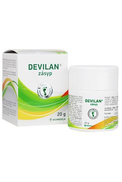 DEVILAN® zásyp se používá k péči o pokožku se sklonem k plísním, zejména mezi prsty dolních končetin. Postižená místa chrání a regeneruje. Zásyp je také vhodný k péči o nohy trpící zvýšeným pocením.