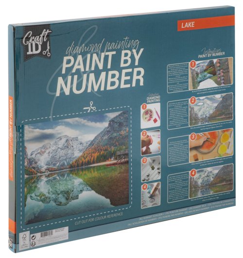 Malování pomocí kamínků Diamond/podle čísel Jezero 40×50 cm. Tento obrázek kombinuje dvě techniky pomocí kamínků a malování podle čísel. Součástí balení vodové barvy, štetec, aplikátor, kamínky a obrázek.