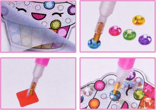 Balení obsahuje: barevné kamínky, aplikátor, misku, vosk a 12 ks samolepek. Diamantové malování - postup: Horní strana samolepek je potažena lepidlem a překrytá průhlednou folií. Kamínky požadované barvy vysypejte do misky. Do hrotu pera naberte vosk, díky kterému se kamínky snadno přichytí na pero, a nanášejte na obrázek.