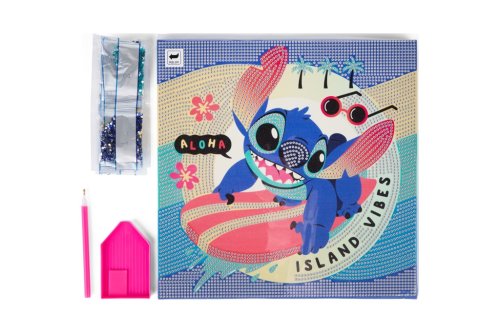 Velká kreativní sada pro výrobu diamantových obrázků na plátno XXL s motivem oblíbeného Stitche ze světa Disney. Pomocí speciálních třpytivých „diamantů“ lze vyplnit obrázek na plátně a vytvořit tak zářivou dekoraci do dětského pokoje či na stěnu.Jasné označení a návod pro snadné dokončení,rozvíjí jemnou motoriku, trpělivost a kreativitu. Součástí balení plátno s předtištěným obrázkem, diamanty různých barev, pořadač a aplikátor.