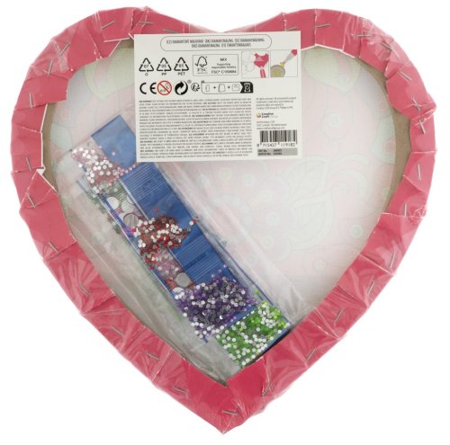 Diamantové malování Srdce – velkost obrázku 29×29,5 cm. Balení obsahuje šablonu srdce, různobarevné kamínky,mističku a aplikátor. Dvě různá provedení.