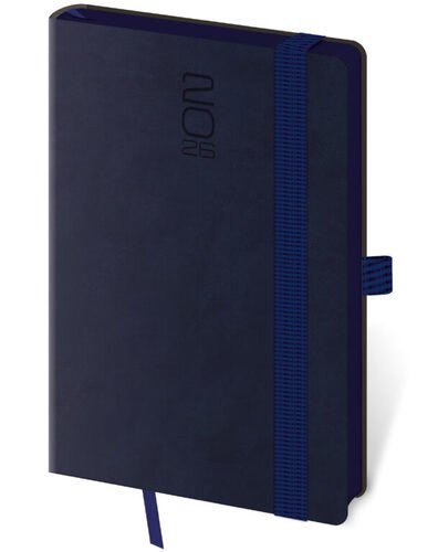 Diář 2026 týdenní kapesní Memory s gumičkou - tmavě modrá