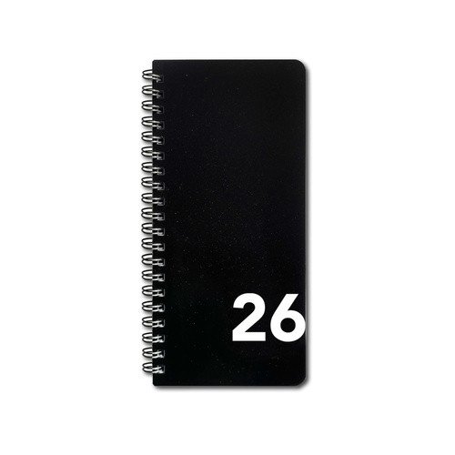 • Týdenní řádkové kalendárium. Jeden týden je vždy na dvou stranách.<br> • České jmenné kalendárium<br> • Pevné neprůhledné plastové desky<br> • Rozměr 8,5 x 18,0 cm.<br> • Záložková stužka pro snadnou orientaci.<br> • Měsíční kalendář.<br> • To do list a časový rozvrh.<br> • Dvouletý přehledný kalendář na roky 2026 a 2027.