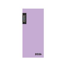 Měsíční diář pro rok 2026 z PVC Rozměr 82 x 184 x 5 mm Celkem 32 stran Info strany obsahují: přehledný kalendář 2026/2027, plánovací kalendář 2026, státní svátky a významné dny, prostor pro poznámky, …