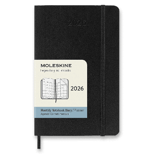 Měsíční diář kapesní velikosti na rok 2026.