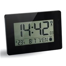 Moderní digitální hodiny vhodné do každé kanceláře Lesklý černý povrch a velká obrazovka LCD 16,5 x 9,3 cm Rádiem řízené - automatické nastavení času, vnitřní teploty a fáze měsíce Multifunkční zobrazení …