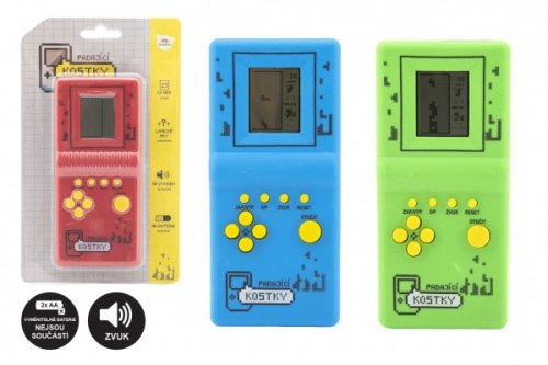 Klasická elektronická hra se skládáním kostiček. Cílem hry je skládat různé tvary do sebe a nenechat žádné místo v řadě prázdné. Po zaplnění celé řady se posune vše o řadu dolů. Skládat můžete až do zaplnění celého displeje. Hra má několik úrovní a rychlostí. Baterie 2x AA nejsou součástí balení. Rozměry balení 13 x 21 x 3 cm. Vhodné pro děti od 3 let.