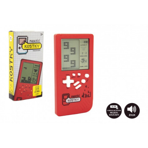 Klasická a oblíbená elektronická hra se skládáním kostiček. Cílem hry je skládat různé tvary do sebe a nenechat žádné místo v řadě prázdné. Po zaplnění celé řady se posune vše o řadu dolů. Skládat můžete až do zaplnění celého displeje. Hra je na baterie, se zvukem. Baterie 2x AA nejsou součástí výrobku. Rozměr balení 7,5 x 14,5 x 2 cm Vhodné pro děti od 3 let