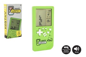 Klasická elektronická hra se skládáním kostiček. Cílem hry je skládat různé tvary do sebe a nenechat žádné místo v řadě prázdné. Po zaplnění celé řady se posune vše o řadu dolů. Skládat můžete až do zaplnění celého displeje. Hra je na baterie, se zvukem. Baterie 2x AA nejsou součástí výrobku. Rozměr balení 7,5 x 14,5 x 2,5 cm Vhodné pro děti od 3 let.