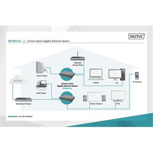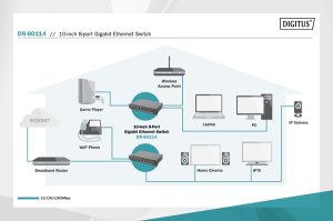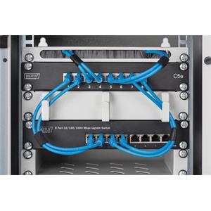 Kompaktní 8portový gigabitový ethernetový přepínač v 10" provedení (25 cm) pro integraci do malých síťových infrastruktur, nástěnných skříní nebo 10" rozvaděčů. Vhodný pro malé a střední podniky, SOHO a strukturovanou kabeláž budov bez požadavků na správu.
