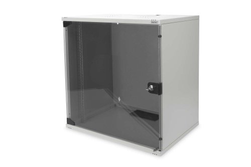 12U nástěnná skříň, SOHO, nesmontovaná 595x540x400 mm, plné skleněné přední dveře, šedá