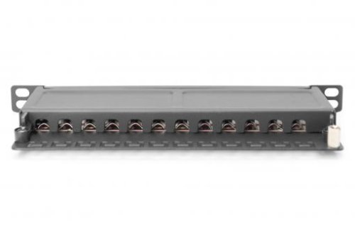 Patch panel CAT 6A, stíněný, 12portový 1 / 2U, 10 "montáž do stojanu, černá RAL 9005