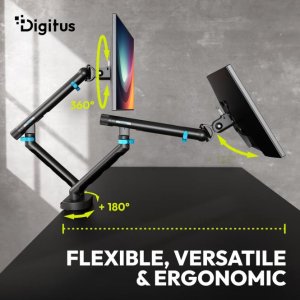 Plně mobilní stolní držák pro dva monitory je perfektní volbou pro každého, kdo si chce vytvořit ergonomické, flexibilní a uklizené pracovní prostředí. Držák, speciálně vyvinutý pro současné použití dvou monitorů, je vhodný pro ploché i zakřivené obrazovky s úhlopříčkou až 35 palců. Každé ze dvou robustních podpěrných ramen nabízí maximální nosnost 10 kg, takže lze bezpečně a spolehlivě uchytit i větší a těžší monitory. Zvláštním lákadlem je integrovaná mechanická pružina s nastavením napětí bez použití nářadí. Ta umožňuje přesné přizpůsobení hmotnosti jednotlivých monitorů a zaručuje, že obrazovky lze plynule a bez námahy přesouvat do požadované polohy. Vestavěný pružinový napínací mechanismus zajišťuje plynulý pohyb a stabilní fixaci v jakékoli orientaci – bez ohledu na to, zda chcete monitor otáčet, naklánět nebo upravovat jeho výšku. Promyšlený a prostorově úsporný design integruje efektivní správu kabelů, která udržuje otravné kabely mimo dohled a zajišťuje uklizené pracoviště. Díky funkci rychlého uvolnění VESA (75×75 mm a 100×100 mm) lze monitory připevnit nebo odpojit během chvilky a bez použití nářadí. Inovativní rychloupínací spojka mezi oběma rameny také usnadňuje a zrychluje instalaci – ideální pro každého, kdo si cení nekomplikované instalace. Pro maximální flexibilitu nabízí držák dvě různé možnosti upevnění: robustní upevnění pomocí svorky pro rychlé uchycení na okraji stolu a stabilní průchodka stolem pro trvale bezpečné upevnění. Vysoce kvalitní materiály a precizní zpracování zaručují dlouhou životnost a spolehlivou stabilitu – i při intenzivním každodenním používání. Ať už v kanceláři, domácí kanceláři nebo v kreativním pracovním prostředí – tento držák pro dva monitory kombinuje stabilitu, funkčnost a moderní design do promyšleného kompletního řešení pro větší pohodlí a produktivitu na pracovišti.