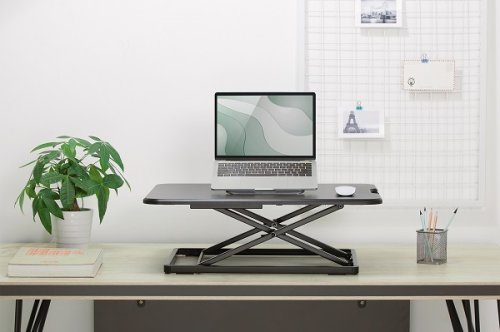 Kompaktní nástavec (konvertor) na stůl pro práci ve stoje/sedě nabízí flexibilní a cenově výhodné řešení pro ergonomickou práci bez ohledu na to, kde se nacházíte.