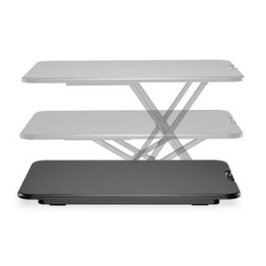 Ergonomický nástavec pro práci ve stoje/sedu nabízí 6 nastavení výšky pomocí integrované spirálové pružiny, kterou lze zaaretovat. Díky vysoce kompaktnímu designu jej lze rychle a snadno uložit, když se nepoužívá. Protiskluzové gumové podložky chrání povrch stolu a nabízejí bezpečné držení. Maximální nosnost je 8 kg. Pracovní plocha nabízí šířku 67 cm a hloubku 47 cm.