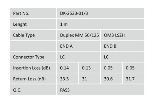 DIGITUS Fiber Optic Patch Cord, LC to LC, Multimode, OM3, 50/125 µ, Duplex Length 1m
