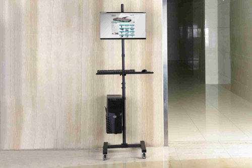 Description Mobile Workstation (Monitor Mount, PC Holder) max. 8 kg load,32" screen max., black Mobile workstation with bracket for mounting a monitor, keyboard/mouse and PC with flexible height adjustment …