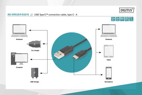Digitus Připojovací kabel USB C na A 1,0 m, 3A, 480 MB, verze 2.0