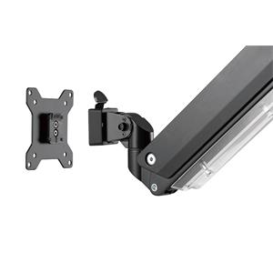 Stolní držák umožňuje individuální uspořádání monitorů od 35". Monitory lze otáčet, naklápět a natáčet. Integrovaná plynová pružina usnadňuje nastavení výšky. S funkcí rychlého uvolnění.