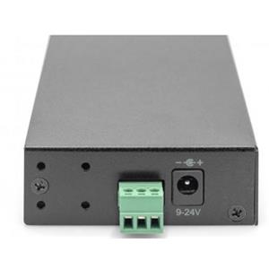 Průmyslový USB 3.0 hub DIGITUS® je díky kovovému pouzdru ideální pro průmyslové aplikace. Lze jej namontovat na zeď nebo na nosnou lištu a připojí se k počítači, notebooku nebo serveru pomocí přiloženého USB 3.0 kabelu. Podporováno je USB 3.0 superspeed s rychlostí přenosu dat až 5 Gbit/s, zároveň je hub downward kompatibilní s USB 2.0 a USB 1.1. Rozbočovač lze napájet přes konektor dvouvodičové svorkovnice (+9V až 24V). Volitelně lze ke konektoru DC připojit externí napájecí zdroj.