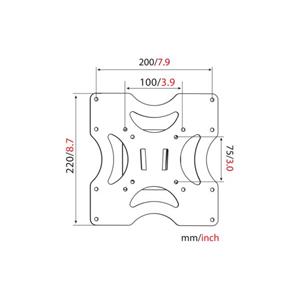 l Vhodné pro standard VESA systémy 75 x 75, 100 x 100, 200 x 100, a 200 x 200 mm.