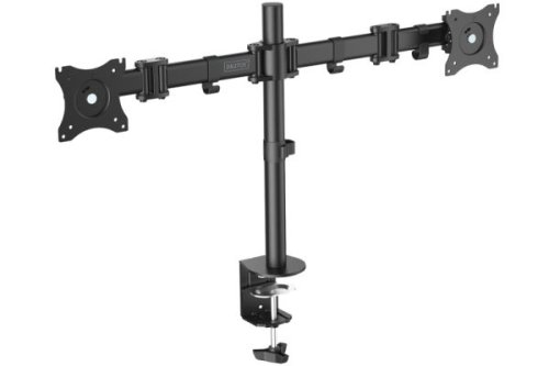 Digitus VESA dvojitý svorkový stolní stojan, 90o otočný, 30o sklopný, otočný 360o, 15"-27" TFT, 100x100, 16Kg, černý