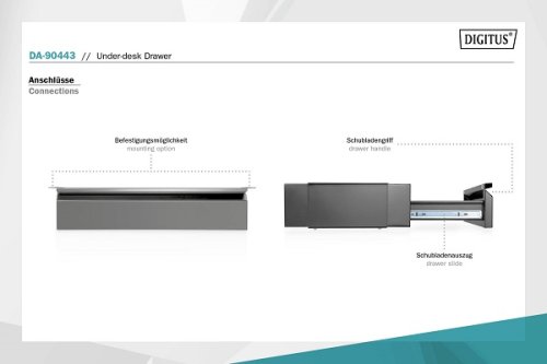 Výsuvná zásuvka pod psací stůl pro individuální umístění na pracovišti - perfektní doplněk k vašemu výškově nastavitelnému psacímu stolu. Vytvořte další úložný prostor. Maximální nosnost je 5 kg.