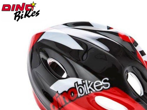 Dětská cyklistická helma Dino Bikes v černo-bílo-červené kombinaci.
