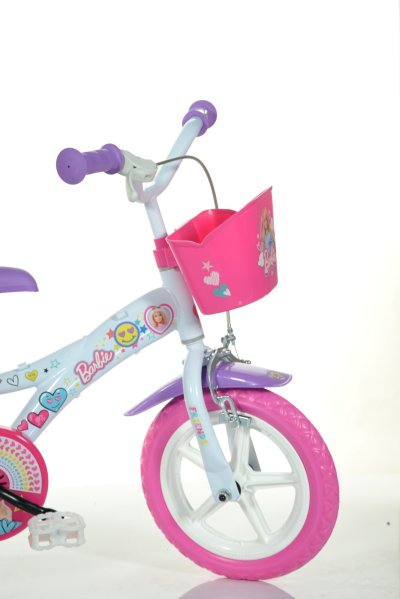 dětské kolo 12", košík, plná pneumatika, 1 přední brzda, stálý převod - tzv. "furtšlap", pomocná kolečka, hmotnost kola 6,5 kg, doporučená výška uživatele 87-110cm, nosnost 40 kg