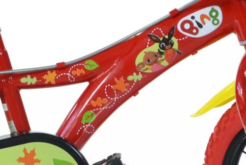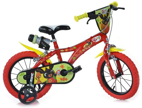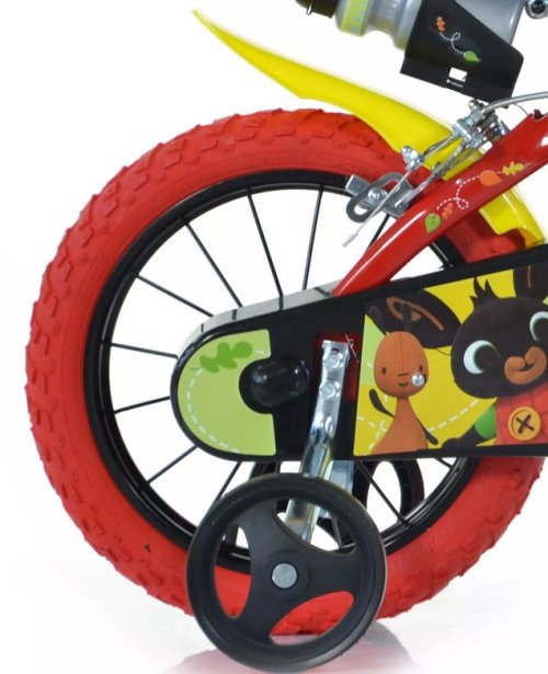 Dětské kolo s motivem králíčka Binga od italského výrobce Dino Bikes s držákem na lahev pod sedlem se vyznačuje propracovaným designem a velmi dobrým poměrem cena,výkon. Vhodné pro děti s výškou postavy 95 - 115 cm. • stylové doplňky - blatníky, držák na lahev • 2 čelisťové brzdy • ocelové ráfky 14" • nafukovací kola (průměr 35 cm) • volnoběžný převod zadního kola tzv."cvrček" • bezpečnostní koncovky řídítek proti smeknutí rukou • přídavná balanční kolečka, která lze odmontovat • hmotnost 8,9 kg Kolo je vyrobeno v EU a má veškeré bezpečností certifikáty.