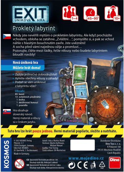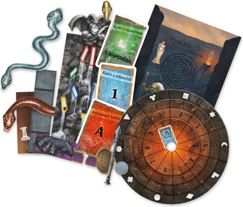 Vstoupíte do tajemného labyrintu. Vtom se náhle s hlasitým bouchnutím zavře. Jste uvězněni! A socha před vámi najednou ožije a promluví… Vyřešte rébusy nebo budete labyrintem bloudit navždy! Věk: 10+. Texty hry v CZ, pravidla CZ/SK.