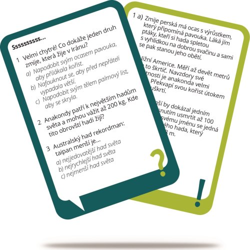 Může vás příroda ještě něčím překvapit? Samozřejmě. Dost možná to bude už první otázka, kterou si vytáhnete při zábavné vědomostní hře v cestovním balení. Kvízy do kapsy u nás pořídíte na různá témata, tentokrát právě s otázkami o úžasné přírodě. Kolik váží anakonda? Jaký rekord drží taipan menší? Blýskněte se svými znalostmi! Na každé kartě se nachází vždy dvě otázky. Odpovědi uvidíte po otočení na druhé straně. Cestovní balení je ideální na výlety, dlouhé cesty autem a klidně i do školního batoh Balení obsahuje: 53 oboustranných karet s otázkami. Vhodné pro děti od 12 let.